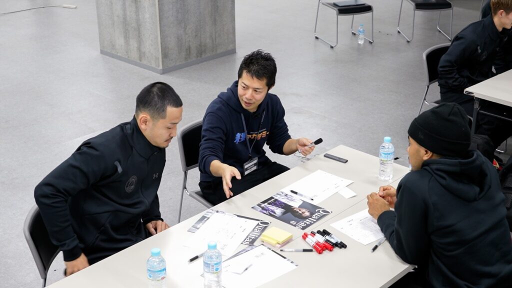 本研修は、単なる引退後の準備を目的とした支援ではなく、競技経験を社会で通用するスキルに変換し、自身の価値をさらに高めるための実践型プログラムです。選手たちは競技人生の棚卸しを行い、コート上で培った思考力やチームビルディング力などを「ビジネススキル」として言語化。日本管財での業務理解とも結びつけながら、自身の可能性を広げていきます。